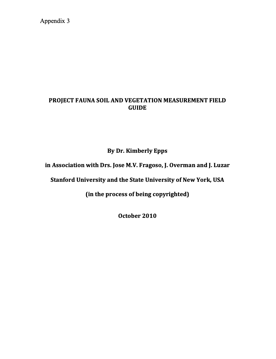 Epps K., Overman J. Luzar J & Fragoso J.M.V. 2010. Soil and Vegetation Measurement Field Guide. Stanford University, USA